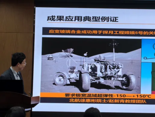 报告最后,任晓兵教授介绍了团队研究成果的应用,例如应变玻璃合金成功用于我国探月工程嫦娥5号及重要战略装备,且应变玻璃(strain glass)新领域研究成为近10年来多个国际会议的主题之一,并被美国NASA等科技巨头组成的形状记忆合金产学研联合体(CASMART)列为重点研究方向。