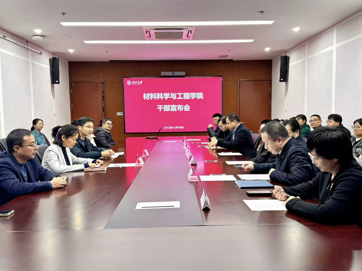 12月15日下午,材料科学与工程学院干部宣布会在紫金港校区和同苑召开。党委组织部副部长夏雷宣读任命文件并讲话,学院党委书记黄任群主持会议。