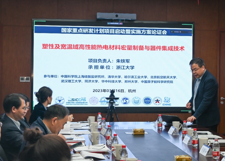 2024年3月16日,国家重点研发计划“高端功能与智能材料”重点专项——“塑性及宽温域高性能热电材料宏量制备与器件集成技术”项目启动暨实施方案论证会在浙江大学紫金港校区召开。