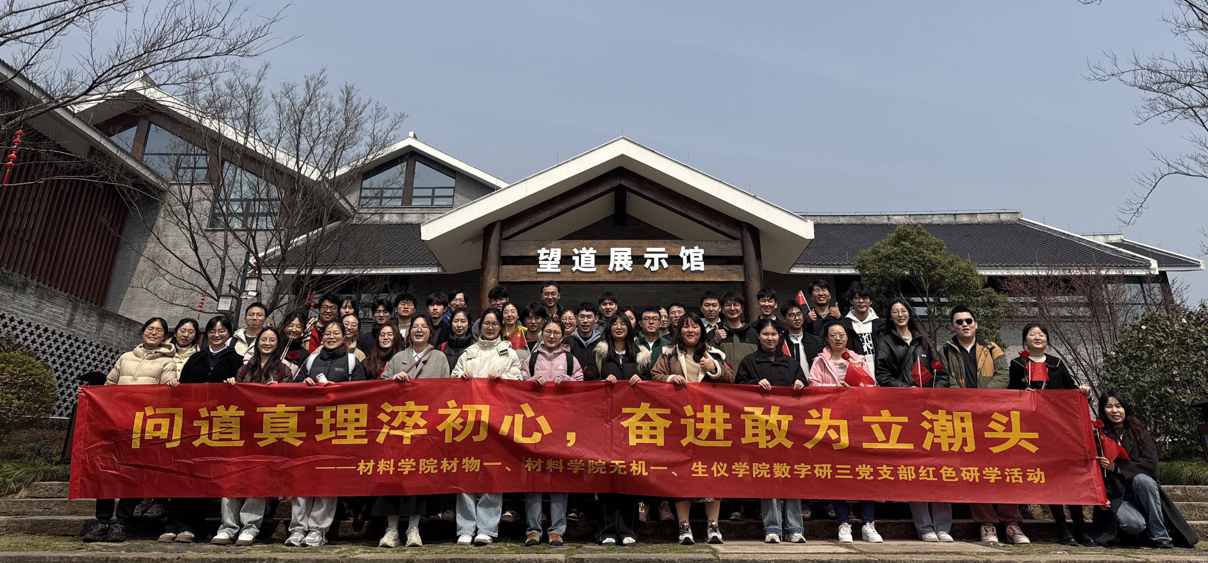 迎着初升的太阳,两支队伍分别从紫金港和玉泉校区出发。材物一党支部支书王茜和无机一党支部支书包齐栋分别带队,同志们怀揣着崇敬与热忱,踏上前往陈望道故居的红色之旅。