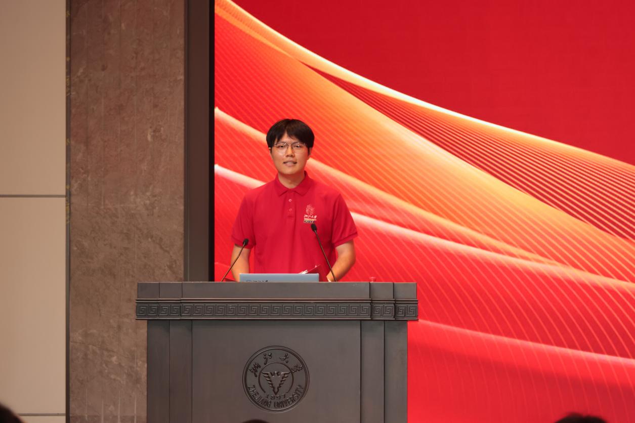 2024级本科生代表毛家杰分享入学以来的心路历程,讲述自己从初入校园的困惑,到逐渐坚定专业方向的转变,呼吁同学们立足当下,在解决问题中打磨自己,保持好奇与试错的勇气,主动拥抱AI时代为材料学科带来的机遇,积极应对挑战,共同探索学科发展新路径。
