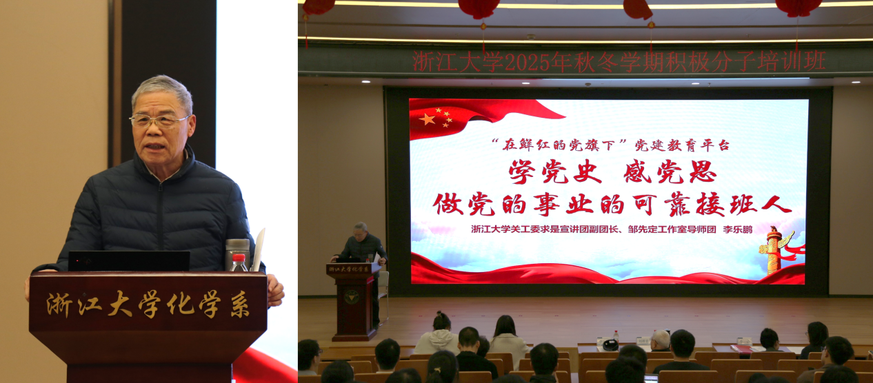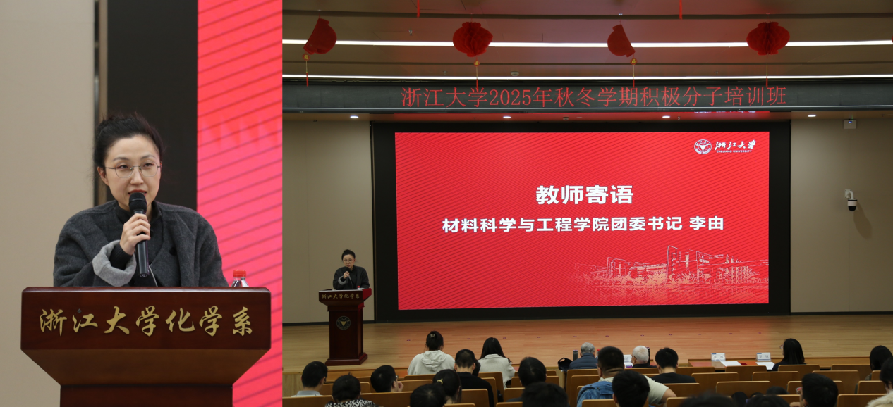 为深入贯彻落实全面从严治党要求,规范党员发展程序,切实保证新发展党员质量,11月29日下午,由化学系、材料科学与工程学院、心理与行为科学系、机械工程学院、地球科学学院、高分子科学与工程学系六个学院(系)联合举办的2025年秋冬学期入党积极分子培训班,在海纳苑5幢之江新材料报告厅(C100)举行。本次培训旨在通过系统的理论学习与实践教学,提升入党积极分子的政治素养与思想觉悟。