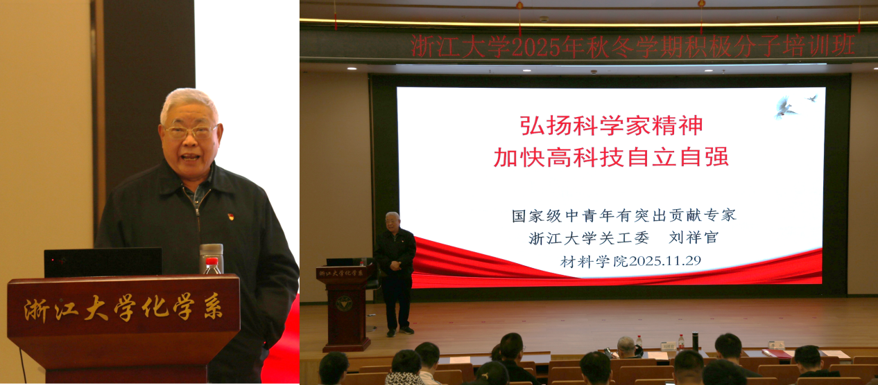 浙江大学关工委求是宣讲团成员、国家级中青年有突出贡献专家刘祥官老师以《弘扬科学家精神,加快科技自立自强》为题授课。刘老师结合党的二十届四中全会精神及“十五五”规划展望,深入分析了高水平科技自立自强的战略意义。他以战略科学家华罗庚先生的贡献为例,生动诠释了“面向世界科技前沿、面向经济主战场、面向国家重大需求、面向人民生命健康”的科学家精神,勉励同学们掌握大数据与人工智能等先进工具,培养创新思维,投身科技强国建设。
